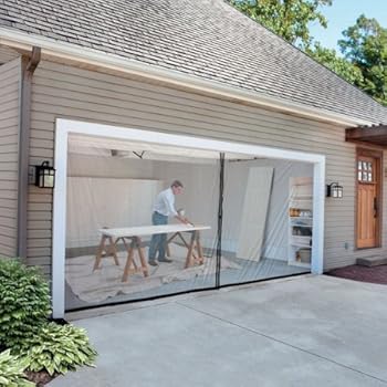 Magnetic garage door screens 16×7 ft double door mesh with hook and loop tape durable fiberglass lifestyle screens garage door screen 7'h with standard screen material (all get on amazon.